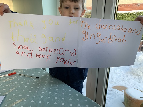 Oliver decided to write this fantastic thank you poster to his auntie for some lovely pressies which came through the post - how special!