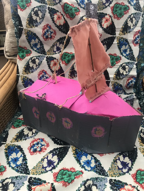 Rane and his sister Sockju baked a green frog cookie - it looks tasty! Sofia has been busy too - look at her great priate ship!