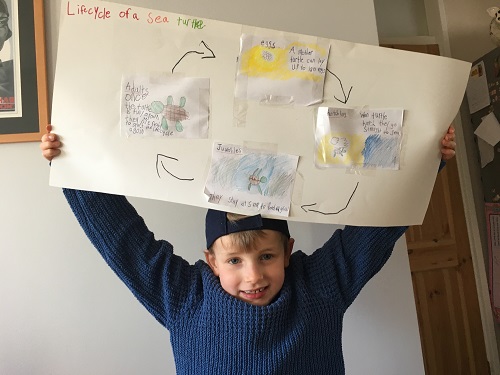 Aryaman has been very busy in science, making this very creative life-cycle of a sea turtle!